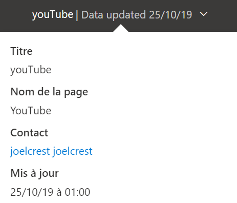 L’utilisateur retrouvera ses informations dans la zone d’information du rapport / tableau de bord, accessible en cliquant sur le nom du rapport dans le bandeau affiché en haut de l’écran.