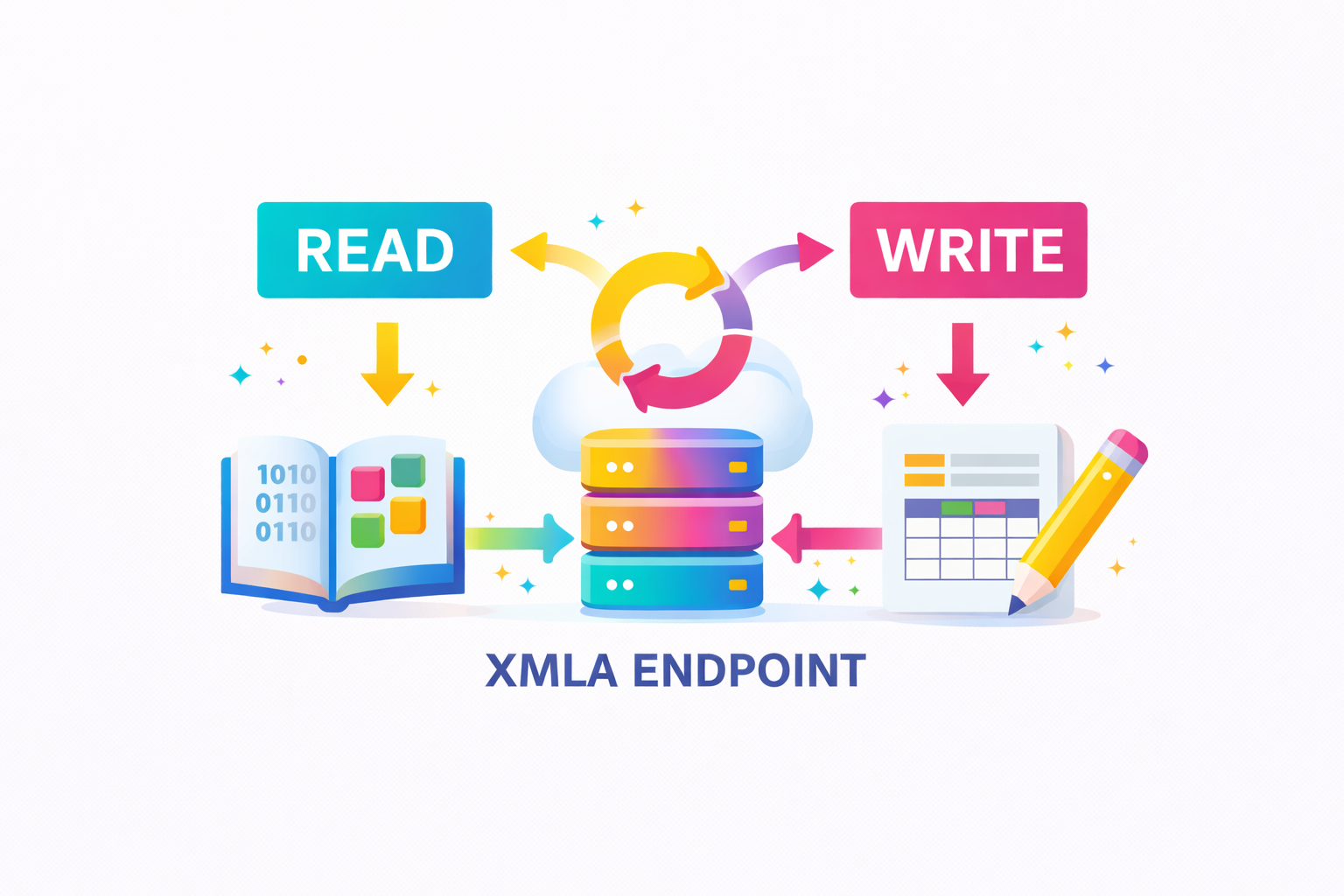 Imaginez un point d’accès direct à un jeu de données Power BI, présenté sous la forme d’une url donnant accès au modèle via une syntaxe bien connue des consultants travaillant avec Analysis Services : le XMLA (XML for Analysis). Ainsi défini, un endpoint XMLA, ouvre les possibilités de plusieurs scénarios (en lecture, mais aussi pour la première fois dans l’univers Power BI, en écriture !) :